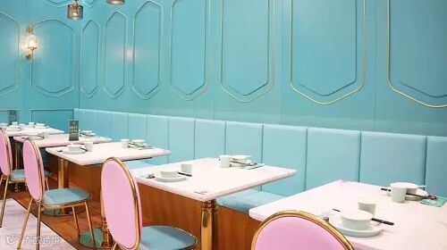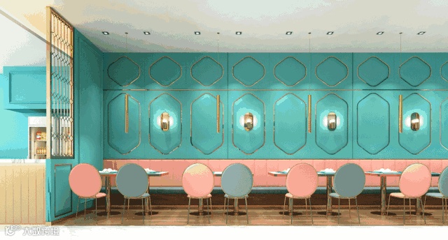 粉与蓝的色彩交融,完全颠覆人们对川菜餐厅的认知!这样的色调和火红的川菜搭配起来反到有意外的反差萌。