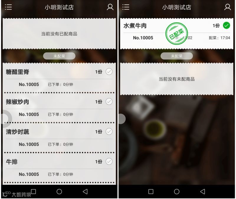 后厨服务员只需要根据订单打包即可。