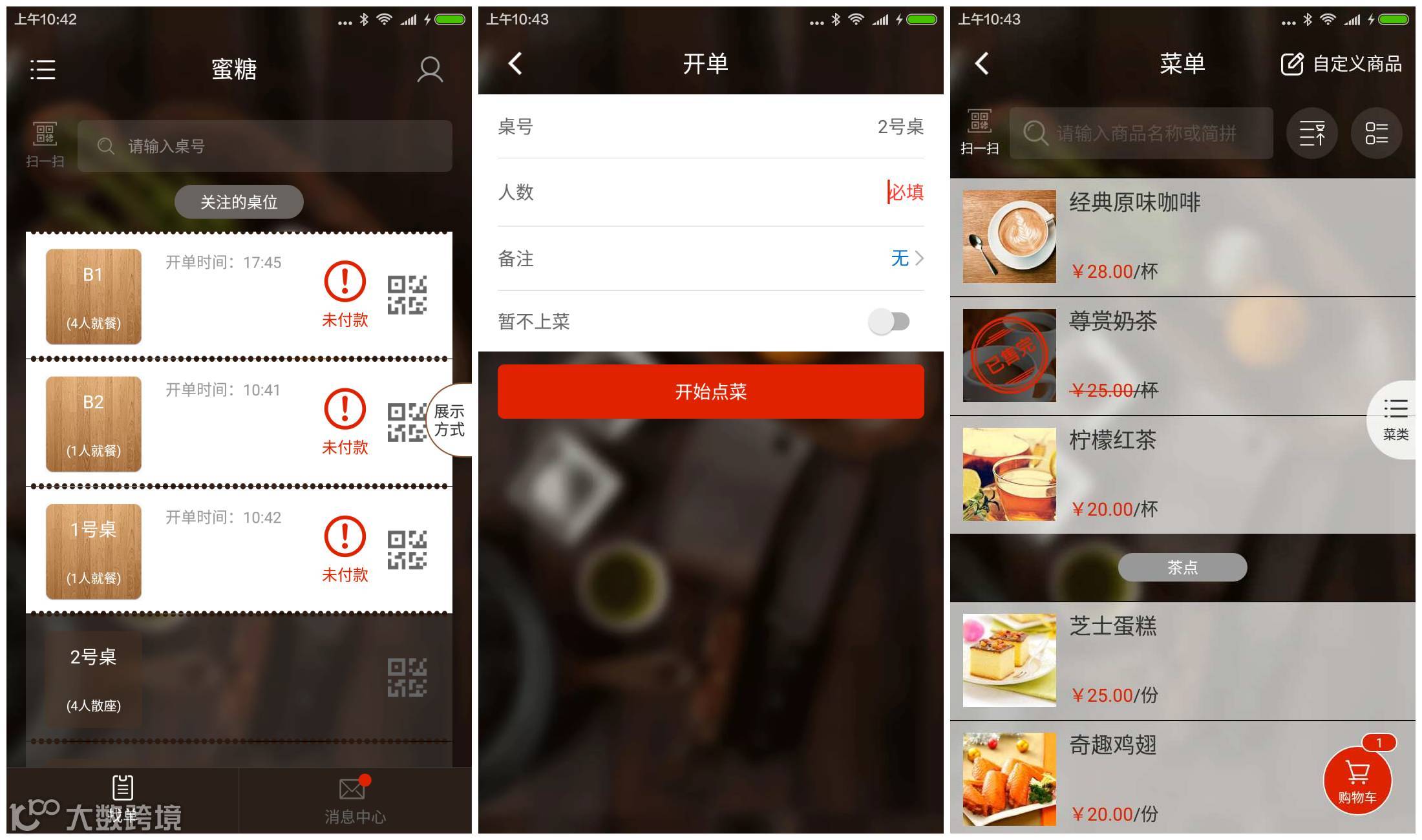 服务员通过手机云收银,随时可为餐厅内的顾客开桌、点菜,无需到收银台二次录入点单信息,大大提升了餐厅下单的效率。