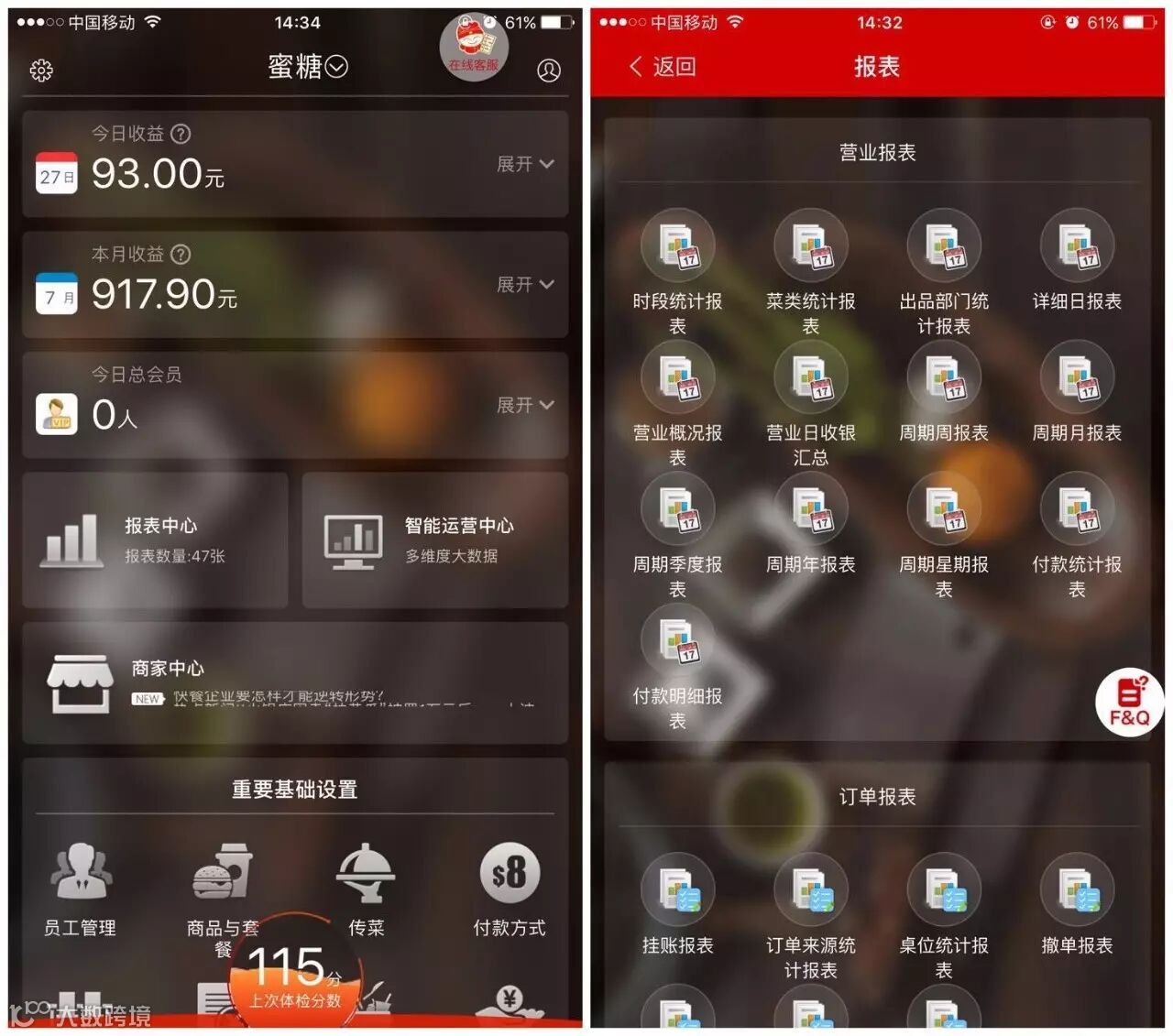 几十种报表供老板查看,包括营业报表、订单报表、菜品报表、会员报表等等,让店铺老板实时了解店铺经营情况,及时做出餐厅发展策略。