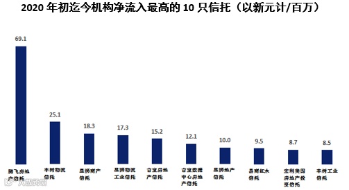 机构净流入方面的表现也同样优异。2020年截至2月21日,这43只REITs和财产信托共获得1.21亿新元的机构净流入。机构净流入最高的5只信托分别为腾飞房地产信托、丰树物流信托、星狮商产信托、星狮物流工业信托和吉宝房地产信托,平均总回报率为8.5%。