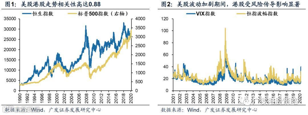 无论美股“危机式下跌”还是“技术性调整”,在美股下跌区间内,港股都会出现阶段性回撤。美股港股走势高度相关,当美股出现回撤时,受波动率传导影响,港股都在一定程度上受到拖累,但其中也存在一些差异: