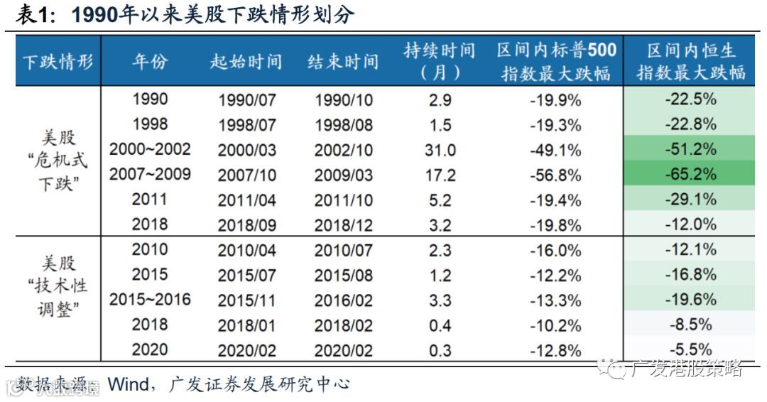在对短期波动难以把握的情况下,从更长周期的视角出发,借鉴历史经验,往往能对市场所处的位置有更清晰的认识。历史上美股不同下跌情形对港股的影响程度有多大,持续时间又如何?港股是否存在“独善其身”的可能,现在宏观背景是否满足港股“脱钩”美股的条件?本期策论我们就以上话题进行剖析。