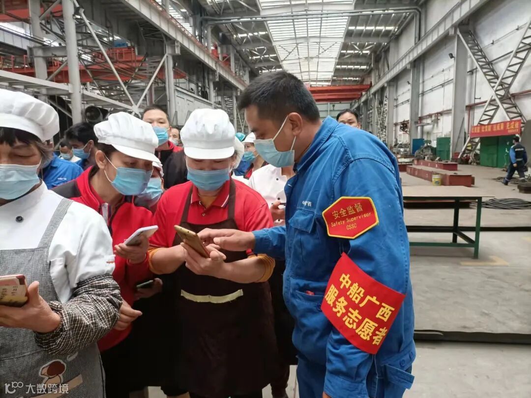 在这场持续20多天的抗疫斗争中,中国船舶集团广西公司在公司党委和疫情防控领导小组的统一指挥下,第一时间研究、动员、部署、落实,严格贯彻落实钦州市和钦州港片区防疫部门出台的各项管控规定,始终坚持以严为总基调,明确“责任清、人数准、去向明、信息畅、落实快”防控要求,沉着应对、精准防控。截止4月5日,公司未发生任何一起疫情事件,有效确保经营生产中心工作有序推进。