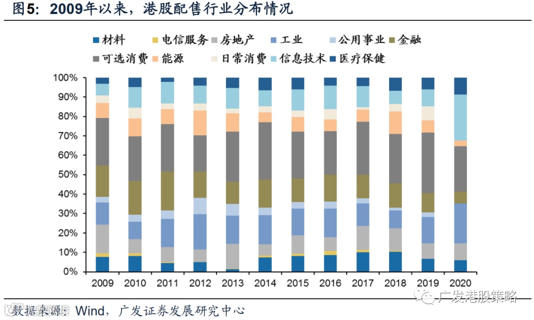 港股再融资成为疫情下IPO滑坡的补充。相比疫情下“遇冷”的IPO,港股配股、可转债(CB)等再融资的发行在疫情下遭受的整体冲击相对更小,但远非火爆。和往年相比,信息技术配股公司占比提升,多以小市值公司为主;从个股来看,不乏部分前期表现强势个股配售。