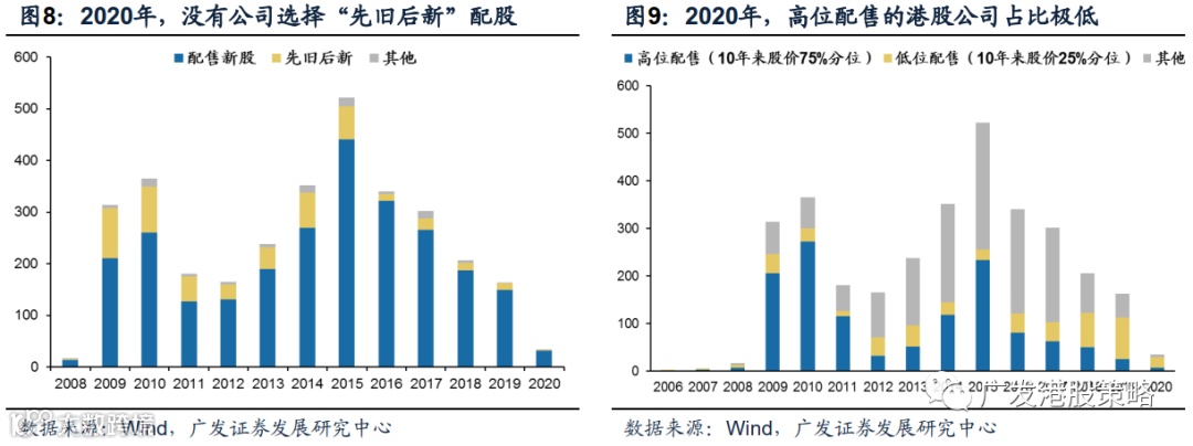 (1)和2009、2010、2014、2017年相比,2020年的整体市场情绪偏低、盈利偏弱、估值偏低,上市公司尤其是传统产业公司的股价多处于底部区间,配售意愿整体不强;