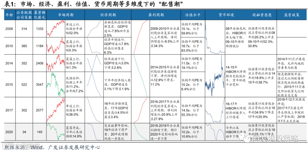 站在市场波动之际,我们需要回答一个容易被“印象流”和“标题党”的疑问——港股是否真的已经迎来配售潮?此外,“逢配股必跌”似乎是港股投资者长期以往的简单粗暴理解,但事实是否果真如此?和历史上多次配股规模较大的年份相比,当前港股所处的市场周期、经济周期、盈利周期、估值水位、货币环境、监管政策是否本就存在根本性的差异,使得即使配售规模增加,也无需对此过于担忧?针对港股配售此话题,我们本期的策论尝试用数据和逻辑进行全面的解读。