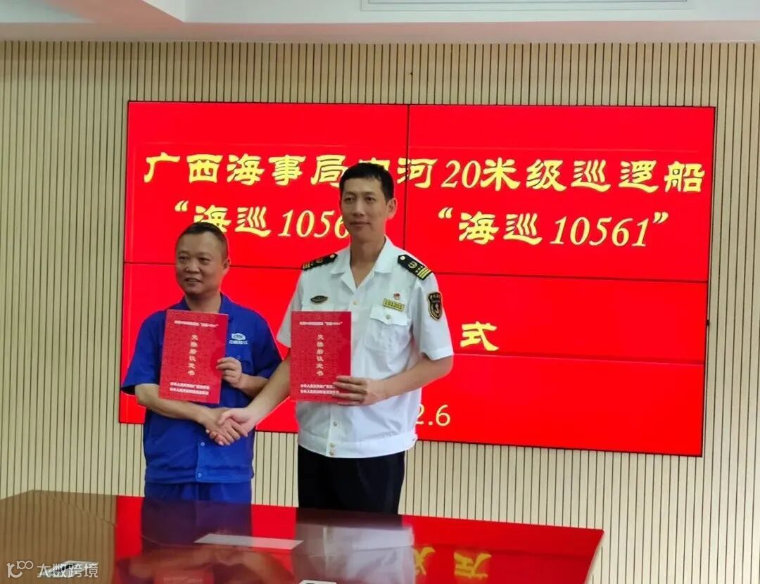 6月30日上午,中国船舶集团广西公司所属桂船公司为广西海事局建造的9艘内河20米级巡逻船中的“海巡10560”及“海巡10561”顺利完成签字交船仪式。