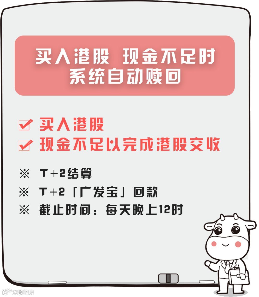 5.1.当客户购买股票时, 广发证券(香港)会先扣除股票账户的现金结余; 当现金不足以完成港股交收时, 系统自动赎回相对应的货币基金份额