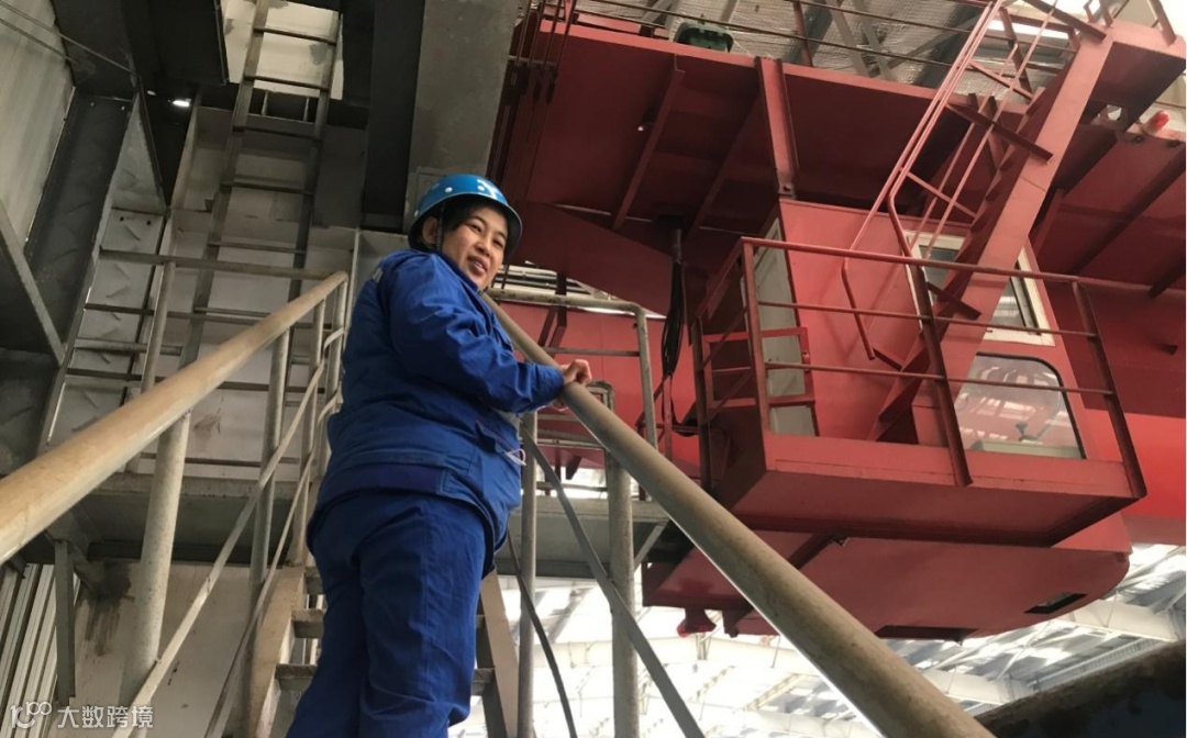 60米车间50吨行车是她每天工作的区域,坚守岗位是她不变的初心;心中有信仰,脚下就有力量是她工作的动力/