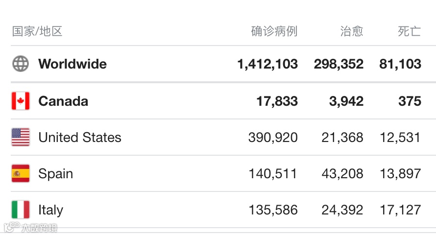 (数据来源:GOOGLE 截止2020年4月7日美西时间下午2:01)