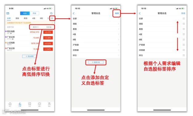 该功能主要用于用户添加自选股后的自选股列表展示,在打开APP后,以自选股列表作为用户看盘标的,迅速掌握自选股涨跌情况。