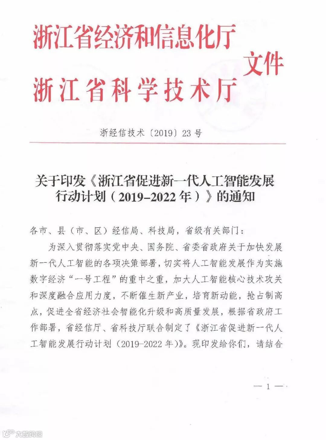 浙江省促进新一代人工智能发展行动计划