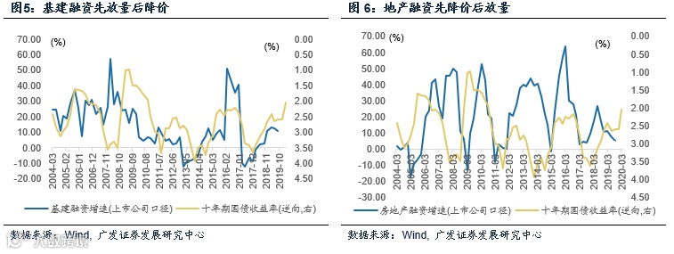 基建的融资周期表现出什么特征?一方面,基建融资与利率具有负相关性,即利率越低,融资环境越宽松,基建融资情况越好;与我们预想的不同,基建融资往往领先于利率拐点而不是滞后,也就是说,基建融资是一个先放量再降价的逻辑,在融资成本整体下降之前,基建融资情况就已经发生改善;而房地产融资则不同,它的逻辑更接近于先降价后放量,也就是说融资情况的好转发生在利率拐点之后。这是由于基建作为政府主导的建设项目,相对于一般企业部门,天然享有融资便利,因此在政策同时在基建与房地产领域采取逆周期调控时,基建融资往往先于房地产融资发生改善,基建投资也就先于房地产投资出现回暖。