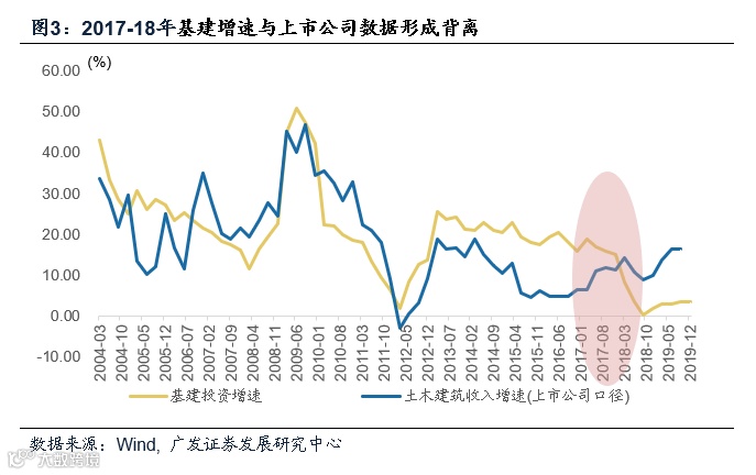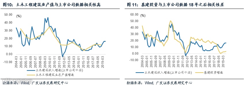 统计制度改革一方面提高了数据统计质量,另一方面也使得改革前后存在统计口径不可比的问题。2018年以来基建投资增速的大幅下降,固然存在政策边际收紧、投资力度收缩的因素,同时也是统计数据挤水分的结果,这一点从宏观指标与上市公司数据的对比中可以看得更明显一些。