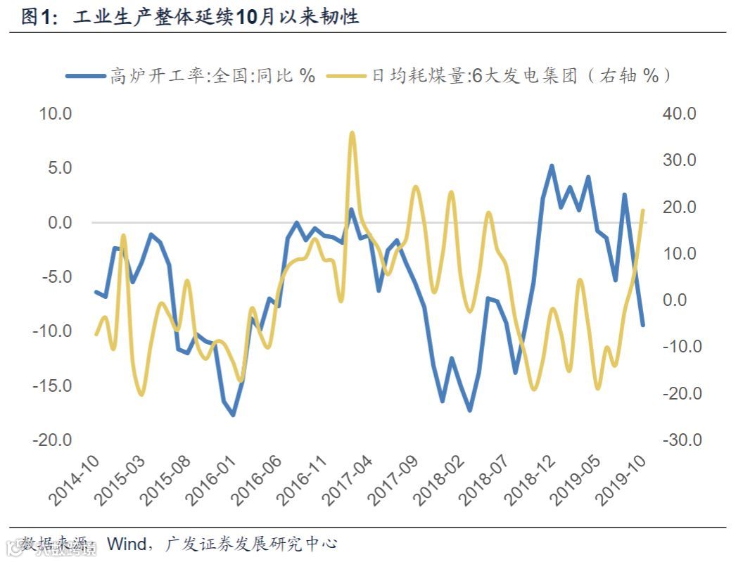 10月发电耗煤增速与工业增加值及发电量背离,低基数下11月同样偏高;结合高炉开工和工业品价格情况来看,11月工业增加值有所修复概率较大。截止11月27日,六大发电集团耗煤同比录得15.2%,较10月增速19.3%略有回落但仍相对韧性。考虑去年低基数效应,前三周同比数据(14.9%,14.9%,15.5%)亦相对偏强。考虑10月发电耗煤增速同样偏高(19.3%),但当月发电量以及工业增加值数据分别录得4.0%、4.7%,整体生产数据并未显著走强,因此11月生产活动亦有背离可能。我们结合近期黑色系价格偏强信号综合判断,11月工业活跃度或存在一定修复概率。