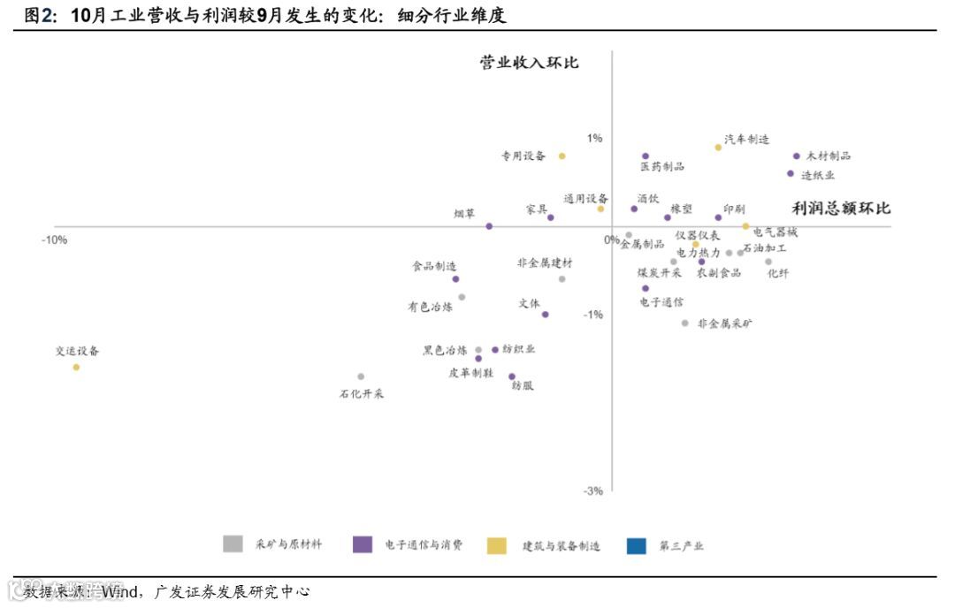 除此之外,仅利润改善的行业主要有化纤制造、石油加工、电力供应等。仅营业收入改善的行业还包括通用和专用设备、医药,家具和烟草制造等。