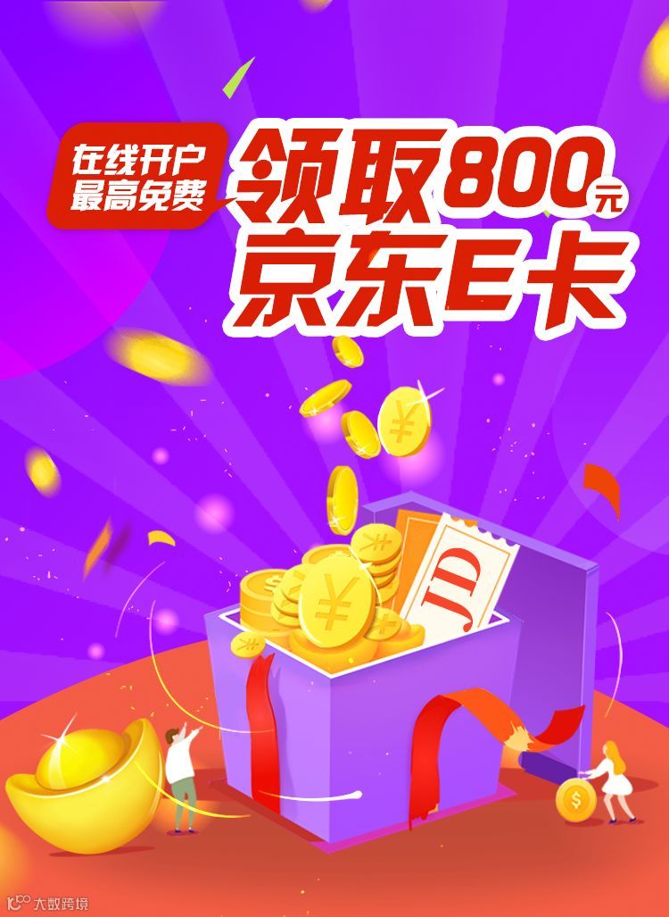 奖励发放:活动结束后,将于七个工作日内通过开户登记的手机号发放京东E卡电子兑换码;