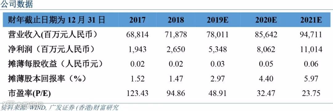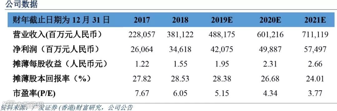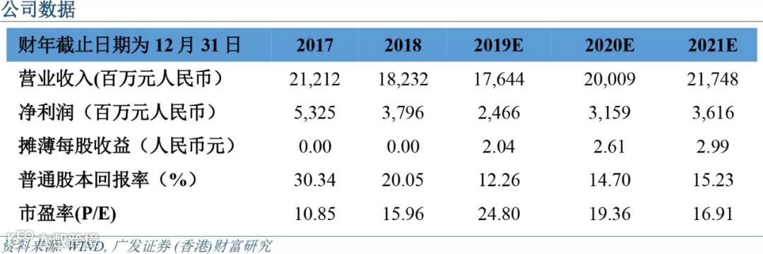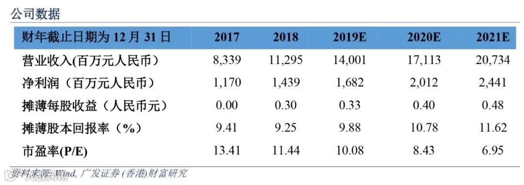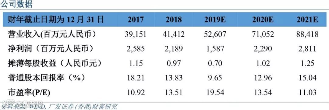 2.我们预计2019-2021年公司归母净利润将分别增长37%、77%和15%,相应EPS分别为HKD 0.92、HKD 1.62和HKD 1.86。我们认为公司估值依然相对偏低,是有吸引力的标的。