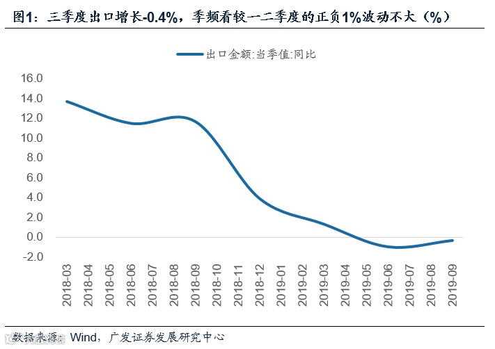 第一,三季度出口增长-0.4%,季频看较一二季度的正负1%波动不大。这里应已包含了二季度2000亿商品关税升级的影响。所以关税越进入必需品区,越靠近中国比较优势的底仓,边际影响弹性越小。