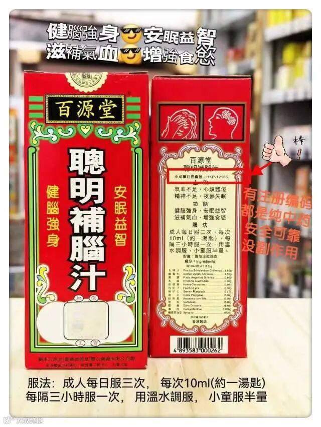香港老字号百源堂聪明补脑汁 针对气血不足,心烦体倦,精神不足,夜梦失眠的亲可以试试,健脑强身,安眠益智,滋䃼气血,增强食欲主治:气血不足、心烦体倦、精神不足、夜梦失眠功能:健脑强身、安眠益智、滋补气血、增强食欲!客户回馈效果挺好,用脑人士,学生老人家都可以试试尤其重要约会考试灵感四射。