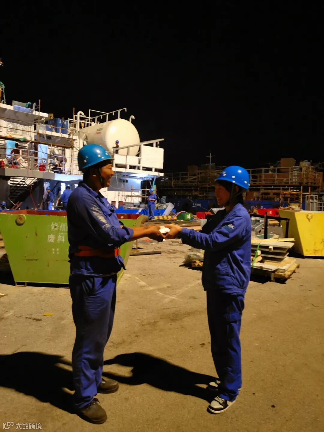 在现场,慰问的同志与员工们亲切交谈,感谢他们为公司付出的辛苦劳动,并嘱咐他们要注意劳逸结合,进行舱内施工、设备安装等施工服务的时候要注意安全。