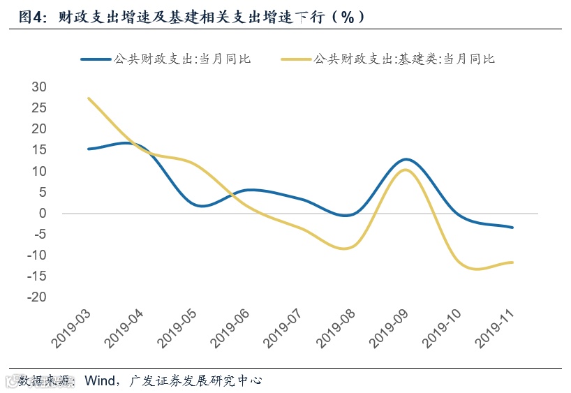 受收入端约束,公共财政支出增速处于回落区间,基建类支出继续下行,仅环保类支出保持相对较高增速。