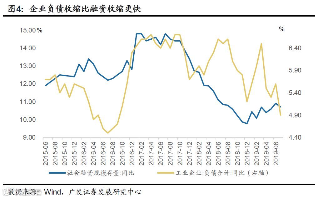 但上述因素并非唯一原因,本月营收确实与工业增加值存在方向背离,汽车行业就是一个典型。如果仅仅是盈利好转,我们可以解释为投资收益等,或者减税的利好效应的释放;但本月营收增速确实是上升的,1-7月营业收入累计增速4.9%,较上期回升0.2个百分点。考虑到工业增加值增速由上月的6.3%回落到当月4.8%,工业增加值与营收的方向性背离比较明显。