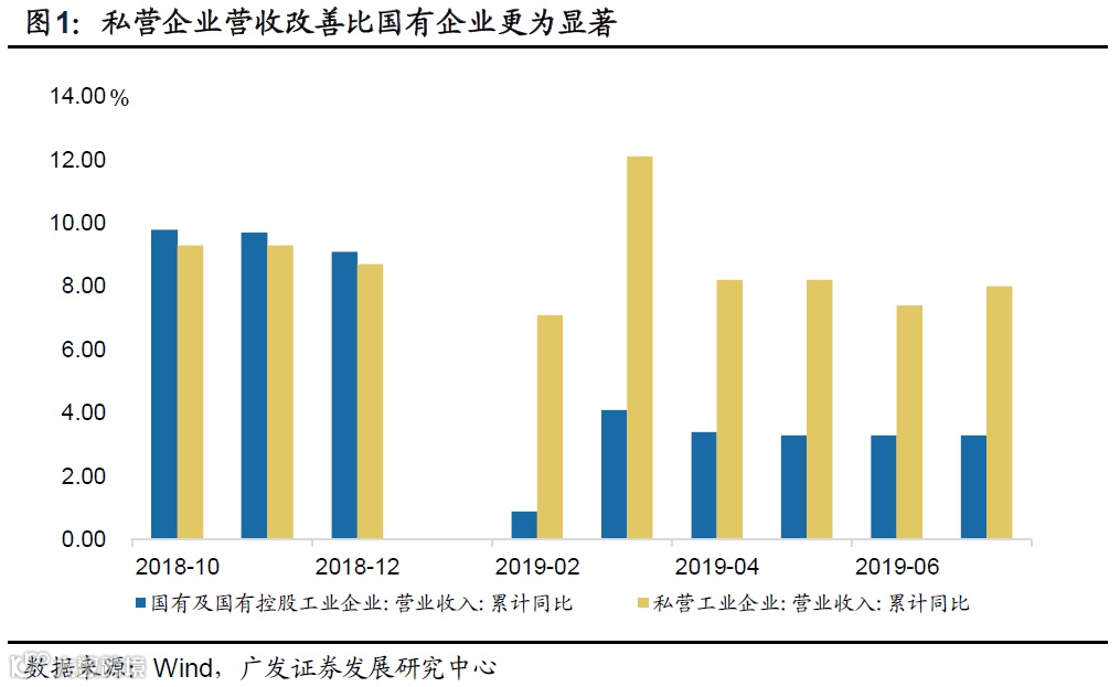 另外一个值得关注的点是私营企业营收、盈利的明显上扬。1-7月,国有工业企业营业收入增速与上期持平,而私营企业较上期回升0.6个百分点;扣除价格因素后的实际增速(大致等同于产量增速)分别回升了0.1%与0.7%。7月单月私营企业利润同比增长11.4%,增速比6月份加快9.7个百分点。