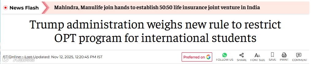 对于数以万计的国际学生而言,OPT绝非可有可无的流程,而是他们毕业后赖以留美、积累经验的“黄金缓冲区”。此政策一旦收紧,无疑将彻底重塑无数留学生的职业轨迹与人生规划。