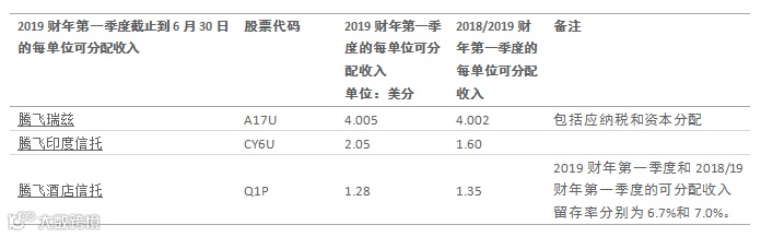 *请注意,7月3日,雅诗阁公寓信托和腾飞酒店信托提出通过信托计划或安排的方式合并,该方案须经联名持有人批准,方案会议尚未召开。