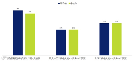 如下图所示,从平均总回报率的角度来看,这8只股票无论是平均回报率还是回报率中位数,均领跑全球市值最大的100只房地产股票以及亚太地区市值最大的房地产股票。这8只股票在平均总回报率和总回报率中位数方面的表现也均领跑亚太地区今年迄今市值最大的100只房地产股票。
