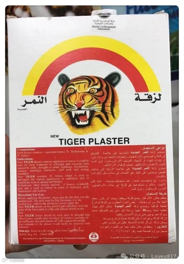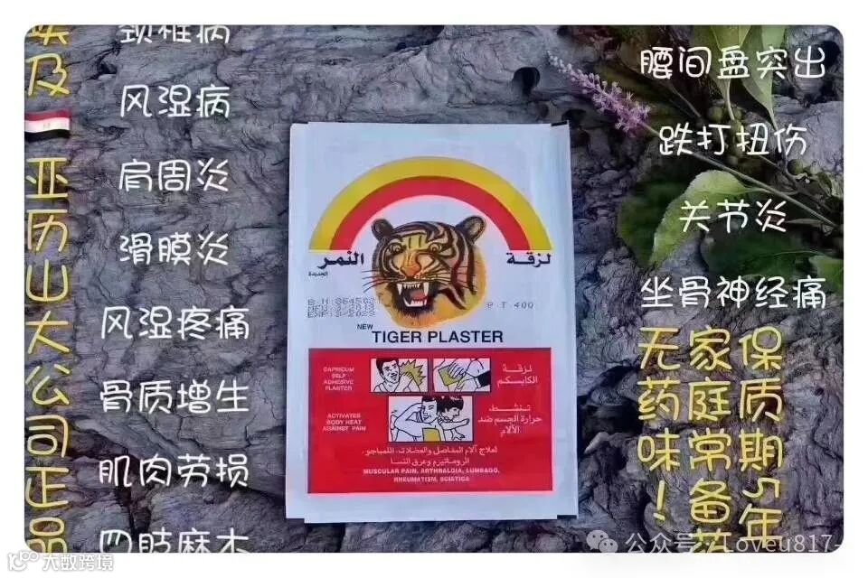 我12年在埃及留学的时候,那个时候网络还没这么发达,真的完全不知道要买啥回国送人,完全靠口耳相传,当时就问过一些在埃及的华人,他们就推荐这个老虎贴!我给家里的长辈备一些在家里,真的很有必要!而且效果真的超级好!就是哪里痛贴哪里就行!