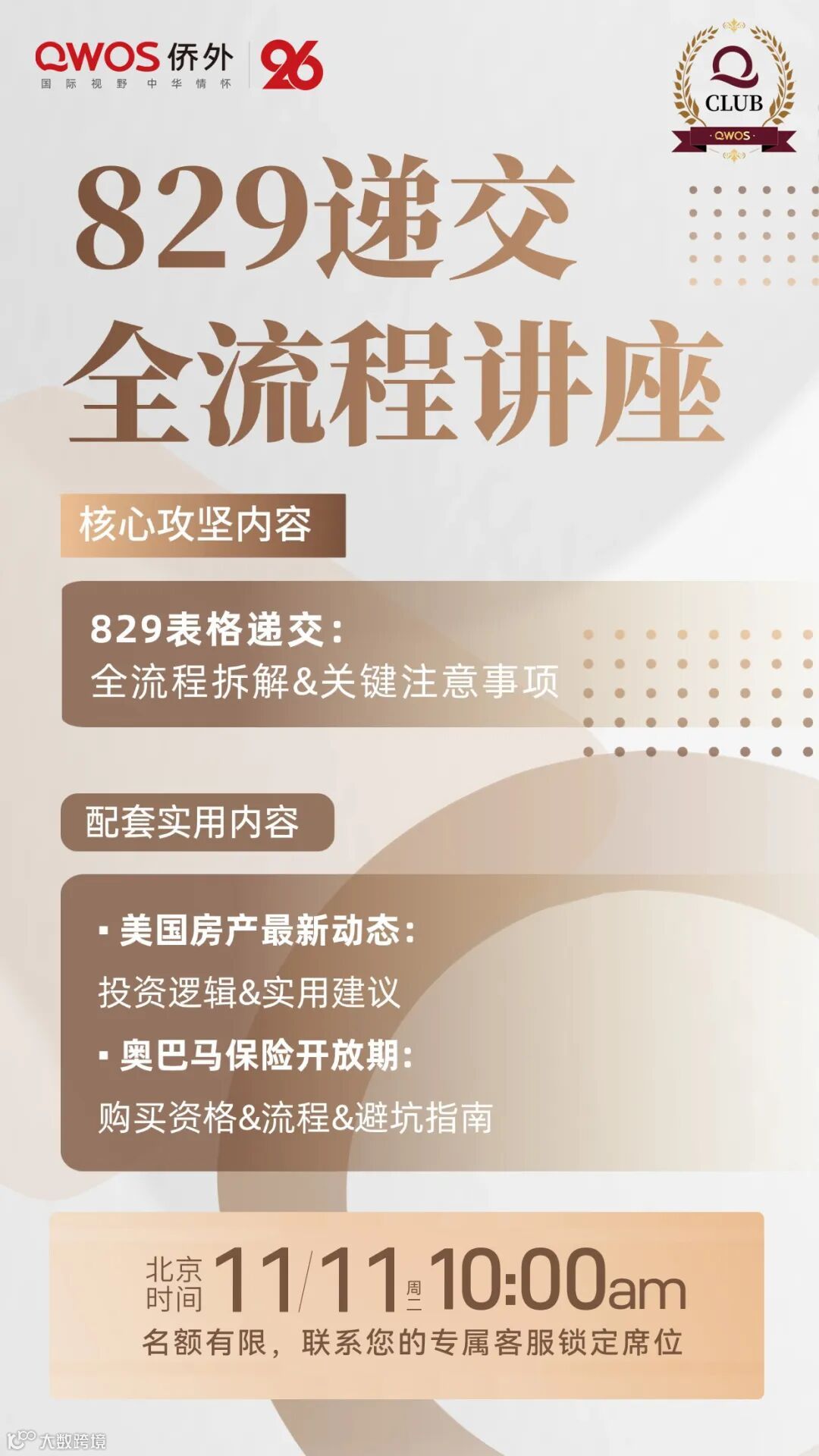 为解答投资人在I-829阶段的核心关切,并前瞻性地规划资产保全策略,侨外移民特邀美国移民专家与资深客服,于 11月11日举办线上深度分享会。