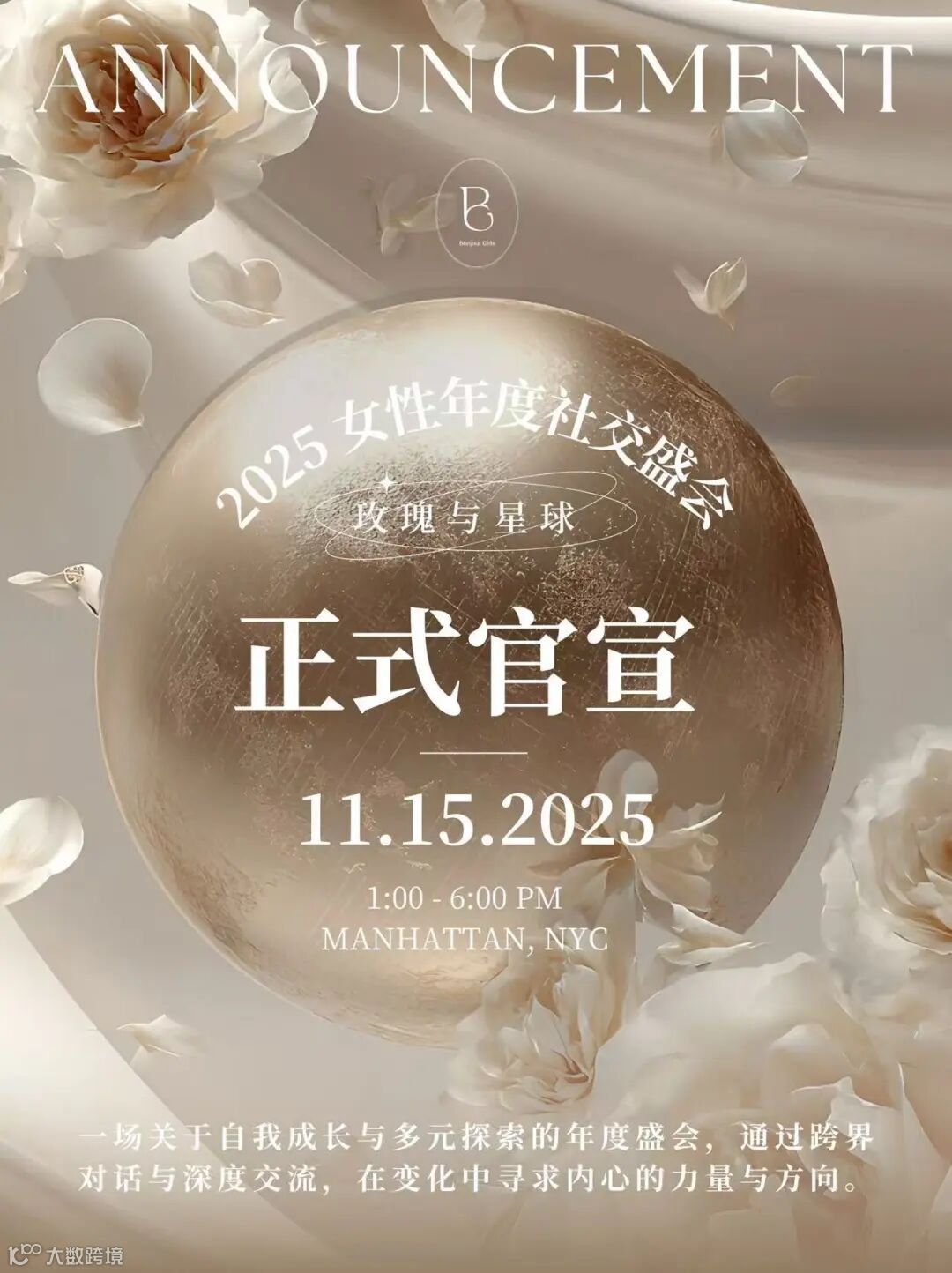 这是一场属于纽约华人女性的年度盛会,一次关于自我成长与多元可能性的深度探索。我们诚邀您,与200+位同路人一起,踏上「玫瑰之径」与「星球之旅」,在变化的时代中,共同寻觅内心的定力与未来的方向。