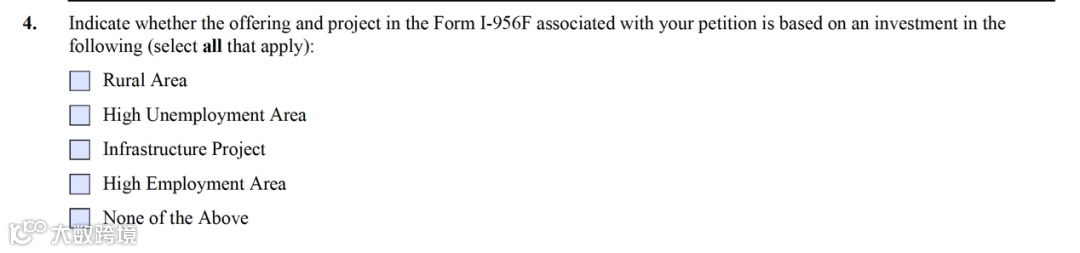 【在递交I-526E申请时,可在申请表上同时勾选“乡村”和“高失业地区”】