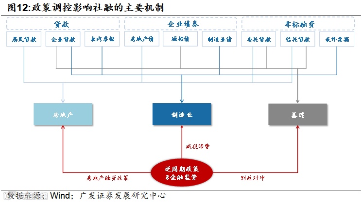 我们认为2019年下半年货币金融条件主线在于外部不确定性提高情况下,政策如何相机决策从而达到内外平衡。相机决策内含三大调控手段,除了传统的财政和货币政策工具之外,第三个调控手段在于金融监管。我们先分析政策调控空间和可能调控方式,再来测算不同情境下的社融增速可能性。