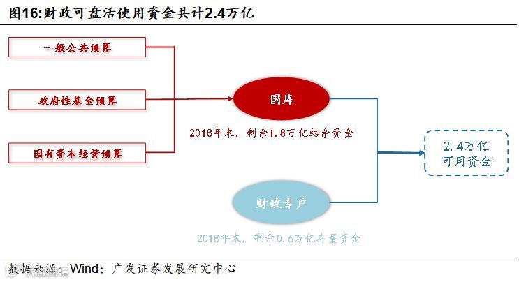 基建投资资金可以归两本账管,一个是预算内账本,主要包括一般公共财政支出和政府性基金,尤其是一般公共预算支出,是基建项目重要的资本金来源。另一本账在于融资平台自己的债务,包括城投债、贷款及非标融资等。目前仍有存量资金可以被盘活使用,初步匡算2018年可盘活存量资金2.4万亿。2019年预算内支出可以在2万亿减税降费的同时不压降规模。这就意味着预算内账本并不缺钱。下半年基建投资持续修复及对应平台债务融资规模回升,回升力度将取决于政策天平倾向于隐性债务调控还是基建投资逆周期对冲。这是下半年财政对冲在社融数据方面的第二点映射。