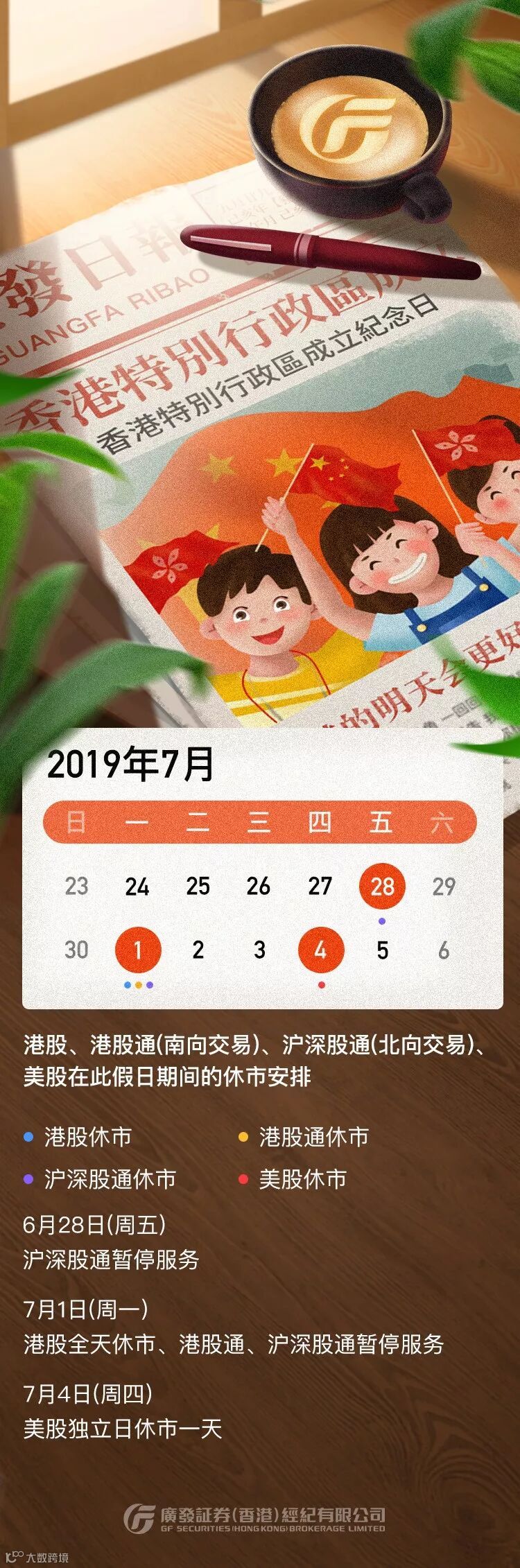 7月1日香港特别行政区成立纪念日,港股休市一天