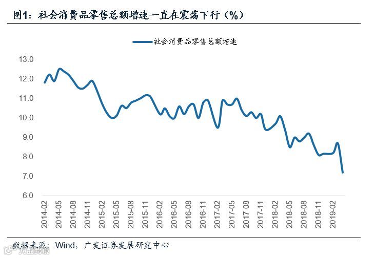 基于社零短期走势就笼统判断消费好还是坏是一个误区。“社会消费品零售总额”(通常简称社零)是我们跟踪消费走势的常用指标。2017年Q2之后,社零总额增速一直在趋势性下行(图);于是就有一种认识是“消费在变差”,并归结为一些较难证伪的因素如房价拖累等。实际上,这一认识过程存在误区:1)随着增长阶段变化,名义GDP增速总归在趋势性下降,消费是这一下降过程的一部分;但消费下降得更慢,即消费的贡献率并非是下降,而是逐步上升的;2)除总量的升降之外,消费还存在结构性趋势,比如服务消费、品牌化、三四线升级;3)从统计意义上来说,社零也并不能完全代表消费,社零的一些单项对总量趋势影响较大,笼统定性容易误导。