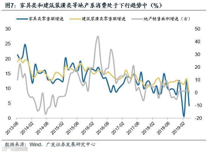 第四,消费有没有趋势性下降的领域?从数据上看确实是有的。比如地产系消费的两个典型领域家具和装潢。