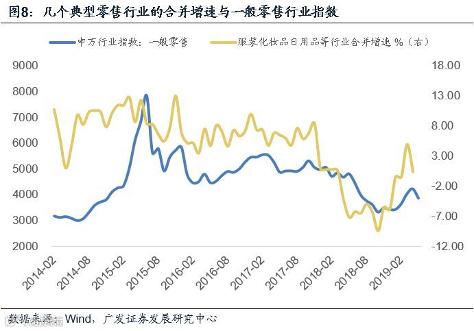 市场是有效的:资产定价对于真实趋势的识别。资产价格能透过数据误区反映真实的消费趋势吗?我们可以以一个例子来看一下。我们以比较有代表性的几个行业消费数据加总来代表一般零售(服装、化妆品、日用品、金银珠宝),可以看到其走势与申万一般零售行业指数亦基本吻合,2018年Q3是一个上行拐点,并没有受社零增速继续下沉影响。换句话说,市场是有效的,它并不是只受“社零”增速定性。只要我们指标选择合理,我们就可以看到资产定价准确反映基本面的过程。