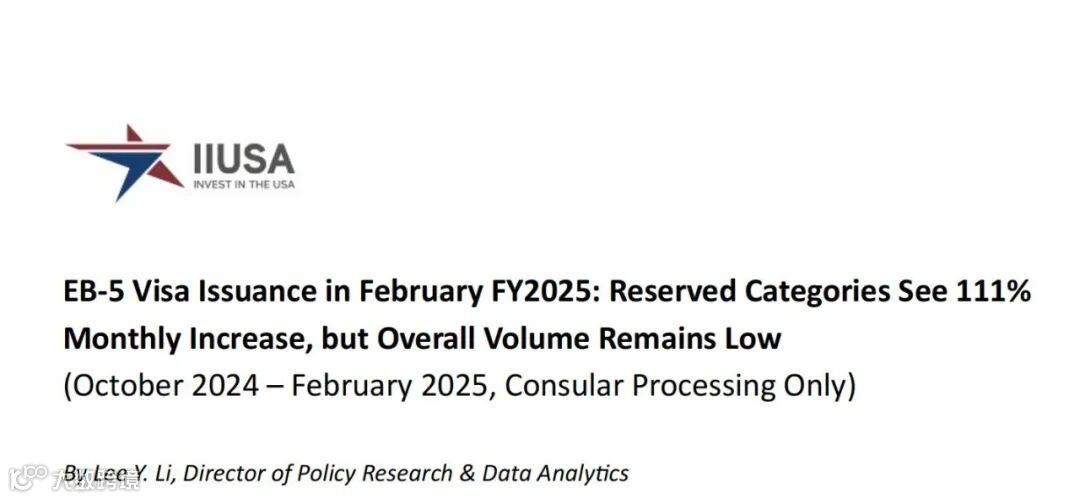近日,美国投资移民行业协会(IIUSA)公布了2025财年的前五个月(2024年10月至2025年2月)的EB-5签证发放数据报告。今天,小侨以这份数据为基础,结合EB-1和EB-2的签证发放情况,为大家盘点一下2025财年美国移民签证发放趋势。