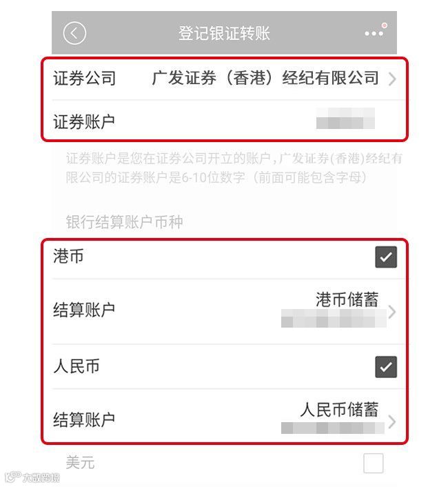 ② 选择对应的证券公司、证券账户和银行结算账户,查看对应的条款。