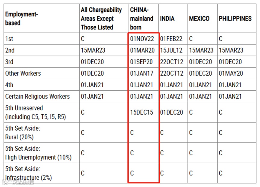 9月份,EB-1表A继续停留在2022年11月1日,表B则停留在2023年1月1日,目前排期为1年10个月。