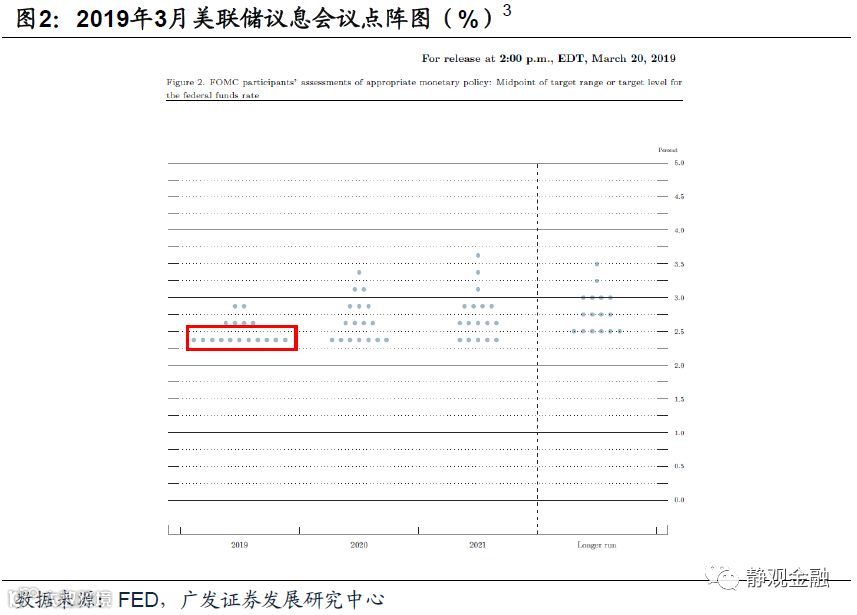 第一、点阵图显示多数美联储官员认为2.25%-2.5%是2019年合意的利率水平,也即:年内或不再加息;