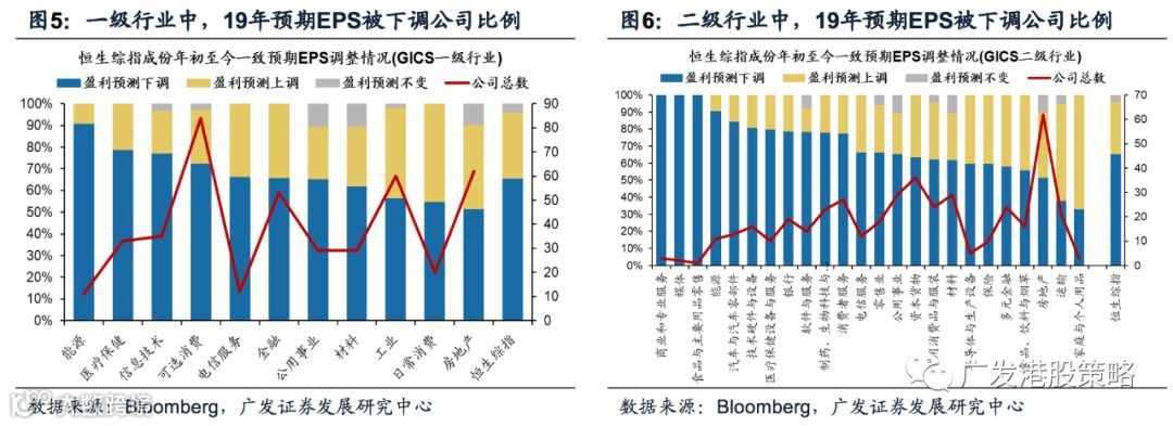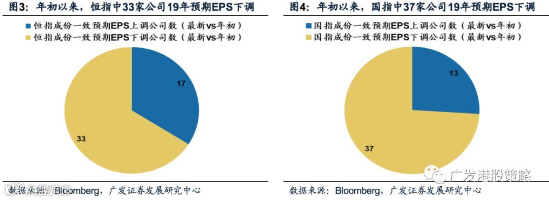 其三,预计19年恒指EPS低个位数增长,但市场6.9%的一致预期增速并不高,后续下调空间有限。