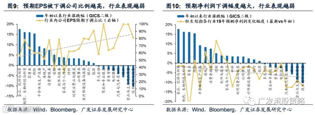 那么一致预期调整如何影响港股?可以参考以下经验规律: