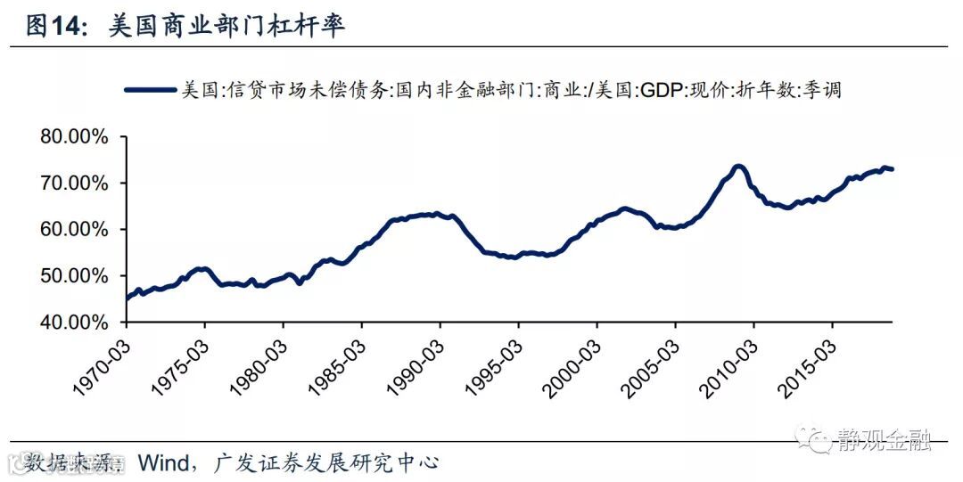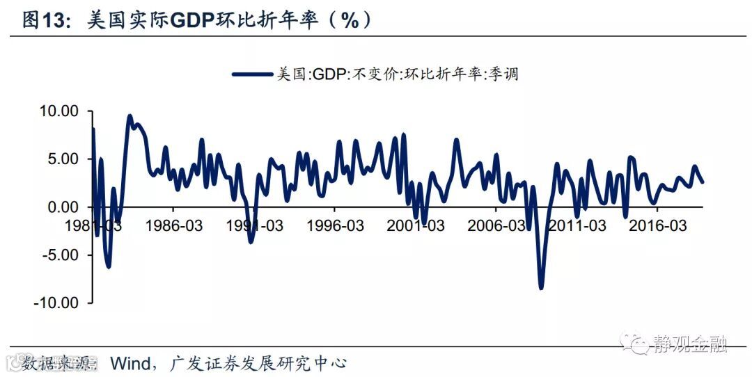 由于目前美国居民部门杠杆率偏低,因此我们倾向于未来1-3年内美国经济衰退风险仍低。之所以多数经济危机都来自地产危机,主因是地产危机与居民部门过度加杠杆有关。所以一般来说,居民部门高杠杆极容易触发经济衰退甚至危机,但若居民部门杠杆较低则经济衰退和危机爆发的概率也会偏低。目前美国商业部门杠杆水平确实偏高,但若货币政策进入由紧到松的周期阶段,商业部门去杠杆带动经济衰退的概率也不大。我们仍预计2019年美国经济周期性放缓,但暂无衰退风险。