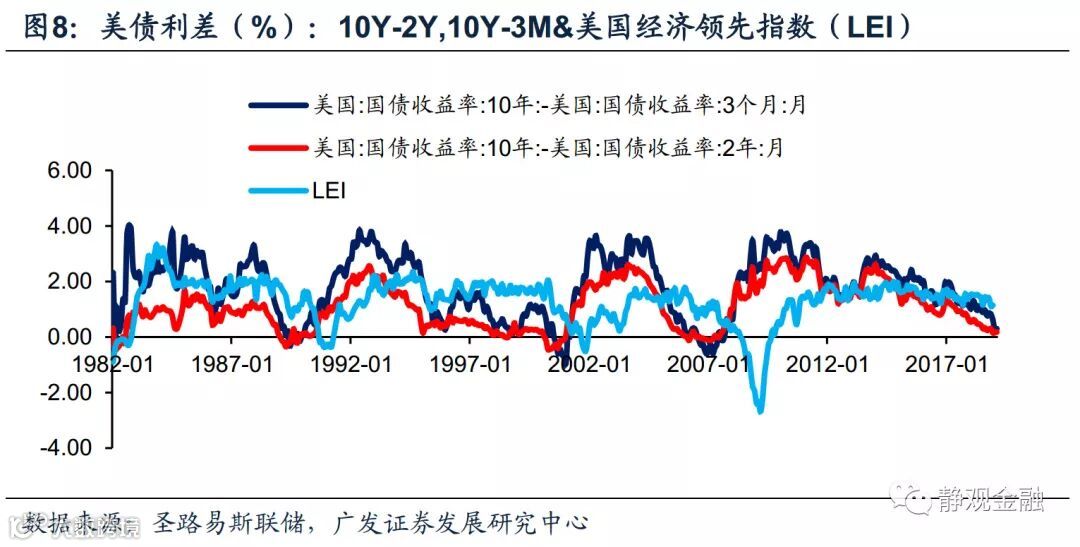 经验规律显示,美国利差曲线倒挂后经济往往出现衰退。我们认为这有两条传导路径:一是美债利差通过经济领先指标影响投资者信心及股市,进而影响居民收入和消费;二是利差倒挂加剧长期贷款收缩。但若将衰退严格定义为实际GDP同比增速(或者环比折年率)连续两个季度为负,那么利差倒挂未必一定带来美国经济衰退。由于目前美国居民部门杠杆率偏低,我们倾向于未来1-3年内美国经济衰退风险仍低。